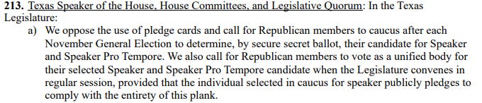 Neither candidate has the 76 Republican votes to win, and there is also the matter of the Republican Party of Texas (RPT) platform: