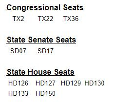 In conjunction with several political clubs in the Brazoria County area, the Brazoria County Democratic Party has done an excellent job getting candidates over the last few elections. Their congressional and State Senate seats cover multiple counties; perhaps they can pick up the slack for some of their neighbors and find candidates for those seats, too.