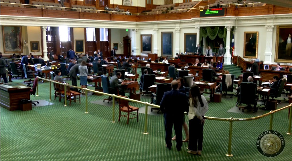 Sixty-five days in, and we’re near the halfway point of the legislative session. The House hasn’t started debating bills on the floor yet, but that’s coming soon. Next week, or maybe the week after. Because the Legislature only meets 140 days every two years, they try to cram two years’ worth of governing in that short time. We’ll see longer days as we cross the threshold to the second half of the 89th Legislative Session. Like yesterday, when the Senate Chamber passed bills until late in the night.