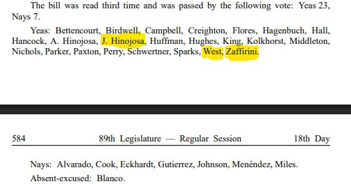 SB3 should have had every Democrat voting against it. It goes against the Democratic principles of liberty and the Texas Democratic Party platform. However, this bill got 24 votes. There are only 20 Republicans. That means that a few Democrats crossed the aisle to vote on this.