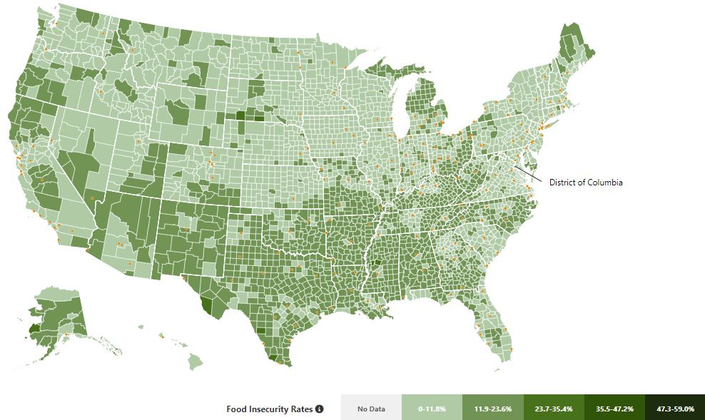 In the State of Texas, the amount of food insecurity is alarming. With a food insecurity rate of 13.7%, equivalent to approximately 4,057,910 individuals, the scale of the problem is astounding. Food insecurity extends to the most vulnerable members of society, as 1,348,600 children in Texas are affected, accounting for an alarming child food insecurity rate of 18.1%.