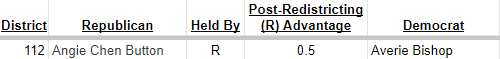 The Republican incumbent of HD112 is Angie Chen Button. Her voting history reflects her far-right alignment with the wealthy. She is vehemently anti-worker and anti-civil rights. Because of her anti-worker, pro-millionaire positions, she’s typically a favorite by PACs led by the Republican establishment.