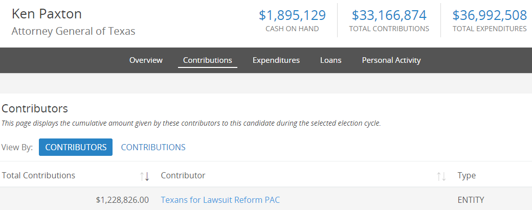 At one point, Ken Paxton is talking with MQS, and he’s very obviously against TLR. He says TLR hasn’t supported him since he was in the Texas House. However, according to his finance records, TLR has been his #1 supporter since 2015, giving him more money than any other donor, including Tim Dunn.