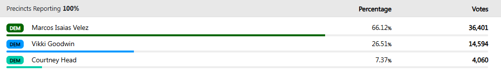 Another race that stood out to me was the Lt. Governor’s race, Marcos Velez taking a big lead in this county.