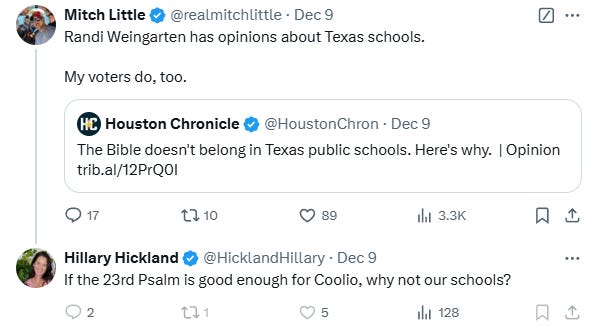Hickland seems to have missed that part of Gangsta’s Paradise. Coolio’s lyrics were a poetic exploration of struggle and survival—not an endorsement for shoving religion into public schools. The song was rooted in the realities of his experience, which is far more than can be said for Hickland’s bullshit appropriation. (🙏🏻 RIP Coolio.)