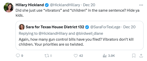 It’s a troubling response that shows a deeper issue with Hickland’s approach to governing. Instead of discussing real challenges, such as the epidemic of gun violence or the underfunding of Texas schools, she chooses to dive headfirst into manufactured culture wars (against dildos).