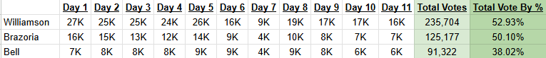 Another 553,577 Texans cast a vote (this number is low, as the Secretary of State is not showing all counties today—including Travis County).