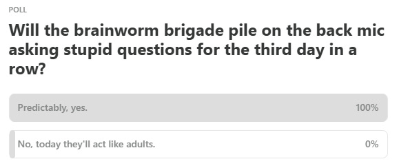 Yesterday, we guessed whether or not the Karen Caucus would continue their temper tantrum over the House rule vote from last week. 100% of you guessed right.
