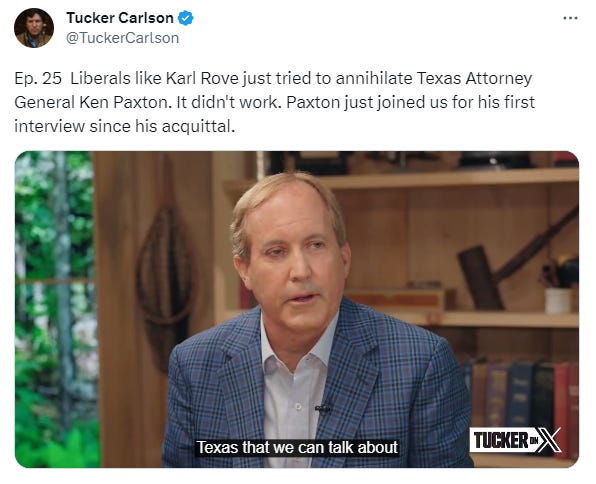You might have seen/heard about Paxton’s groundbreaking interview on the Tucker Carlson show.