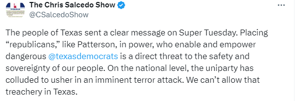 Jared Patterson is so full of hatred toward his fellow Texans and regularly embraces taking away civil rights from marginalized communities. One would think that would make him a perfect Republican.