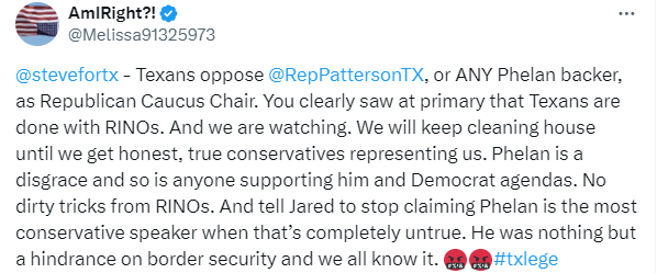 Republicans in the House know this and understand the process. Yet, the Tim Dunn crew constantly lies about the process and blames Dade Phelan and Democrats because they know their base will believe anything they say, whether it’s true or not.