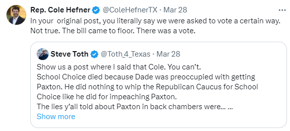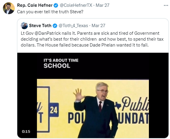 Over the weekend, Hefner called Representative Steve Toth out on his lies about the House rules.