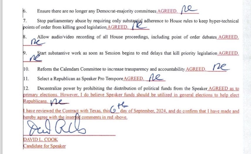 David Cook’s first commitment to the “Contract on Texas” was only to seek support from Republican members.
