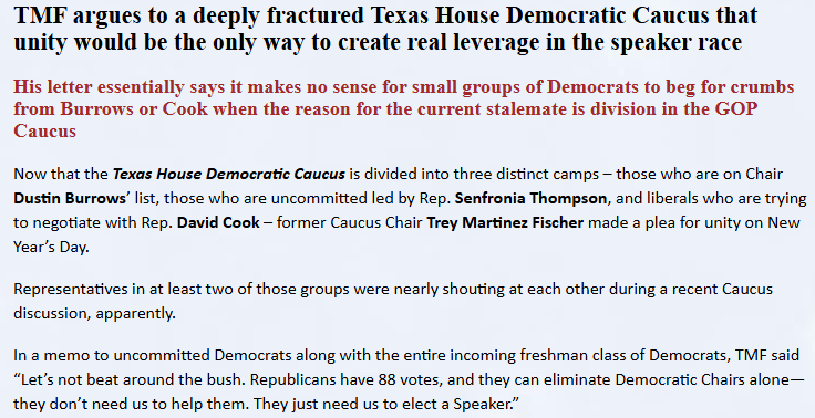 There are nine days left until the 89th Legislative Session is gaveled in, and the Republican Party of Texas remains in complete and utter chaos. Now, somehow, Democrats are being pulled into it.