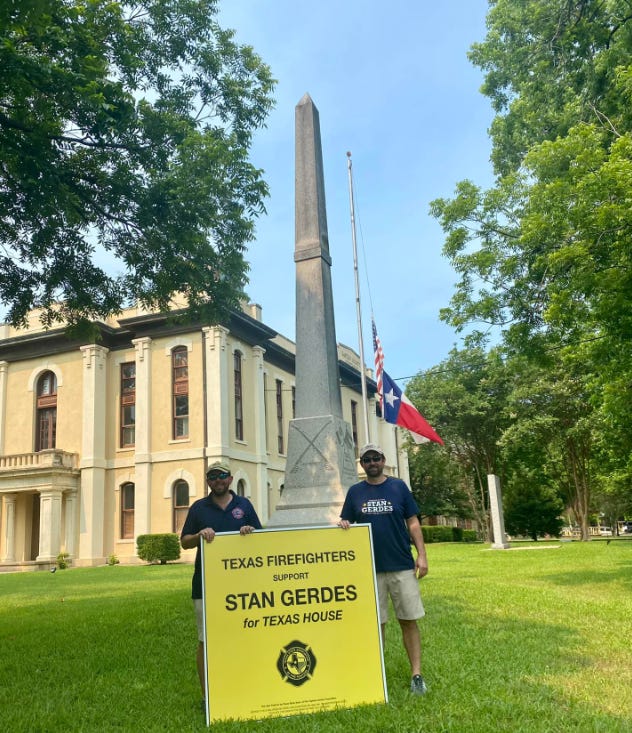 I call him “Confederate Stan,” the Republican incumbent Stan Gerdes. The reason I call him “Confederate Stan” is because he ran his first race, in 2022, on protecting the odes to white supremacy that litter the lawns of courthouses all over Texas.