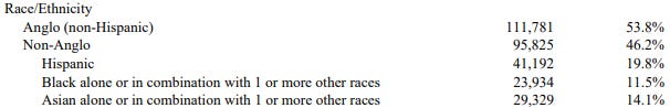 This area is incredibly diverse. The demographics here are 53% Anglo and 46% non-Anglo.