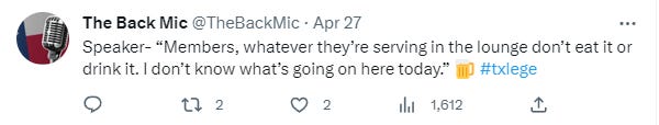 At the time, it seemed like such a strange interaction. But less than an hour later, Speaker Dade Phelan hinted that alcohol was being served in the lounge.