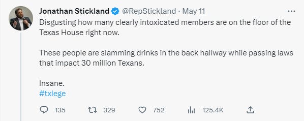 The fascist-peddling former Rep. Jonathan Stickland posted this on Twitter on May 11: