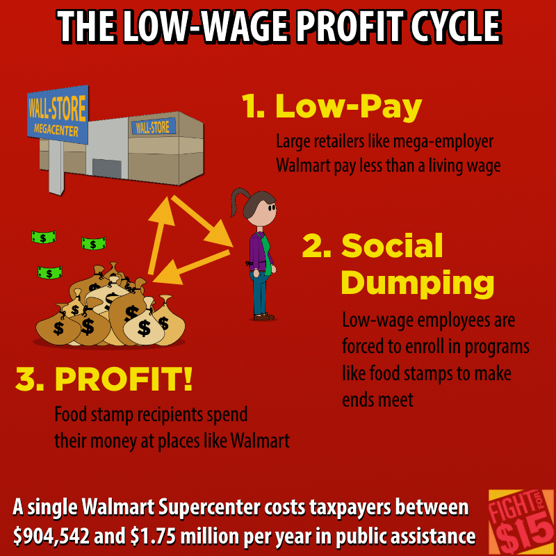 According to Fight for $15, one Walmart supercenter costs taxpayers up to $1.75 million annually. There are 3,560 Walmart supercenters in America.