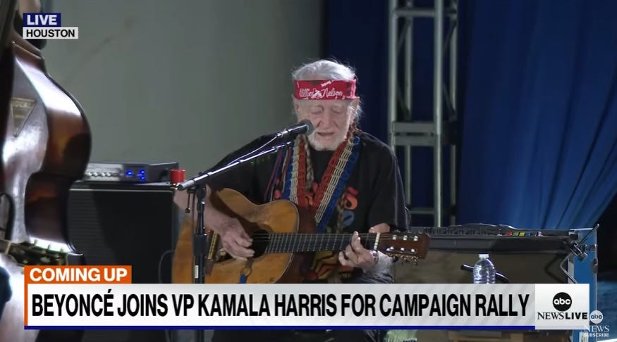 Check it out. Willie Nelson, at a Kamala Harris rally in Texas.