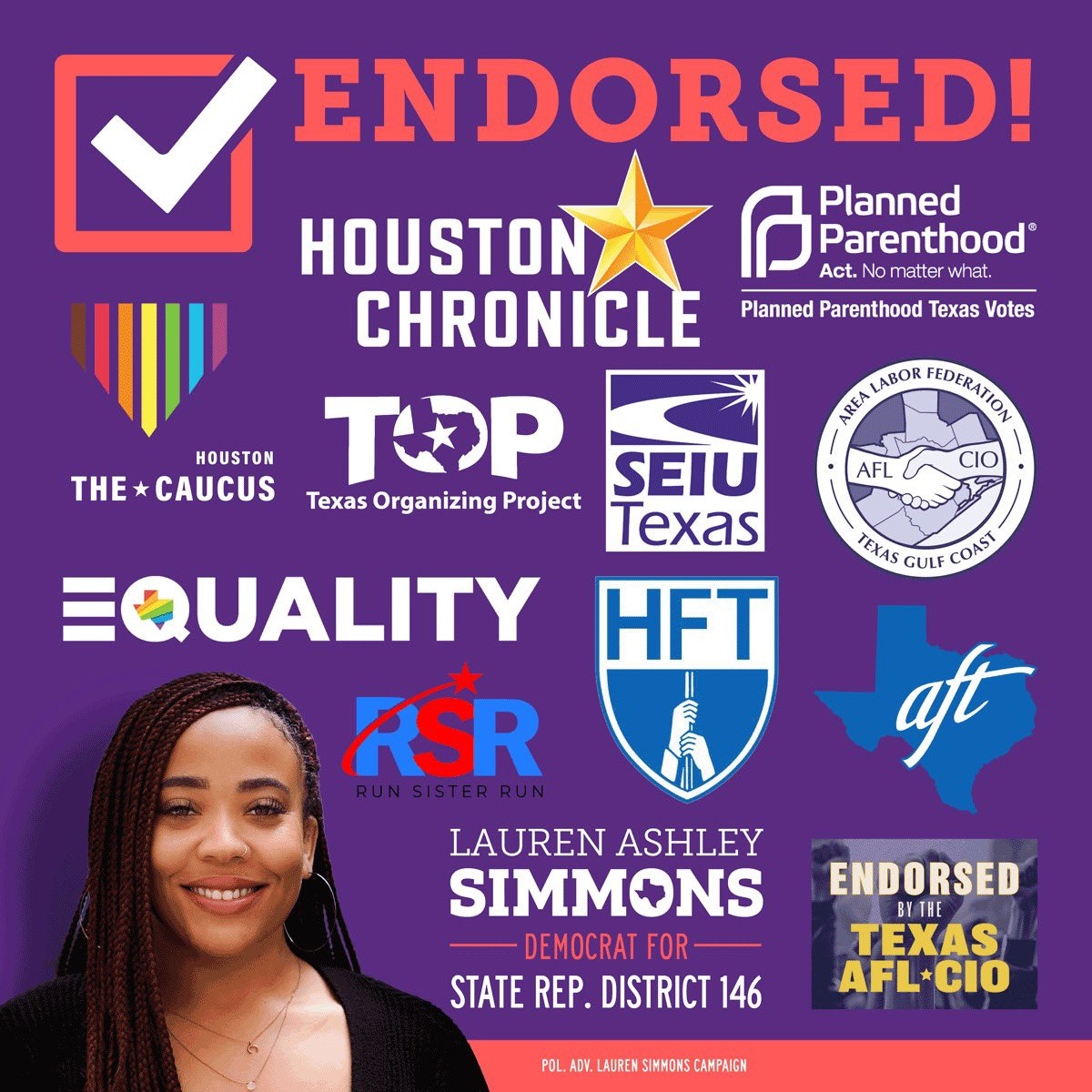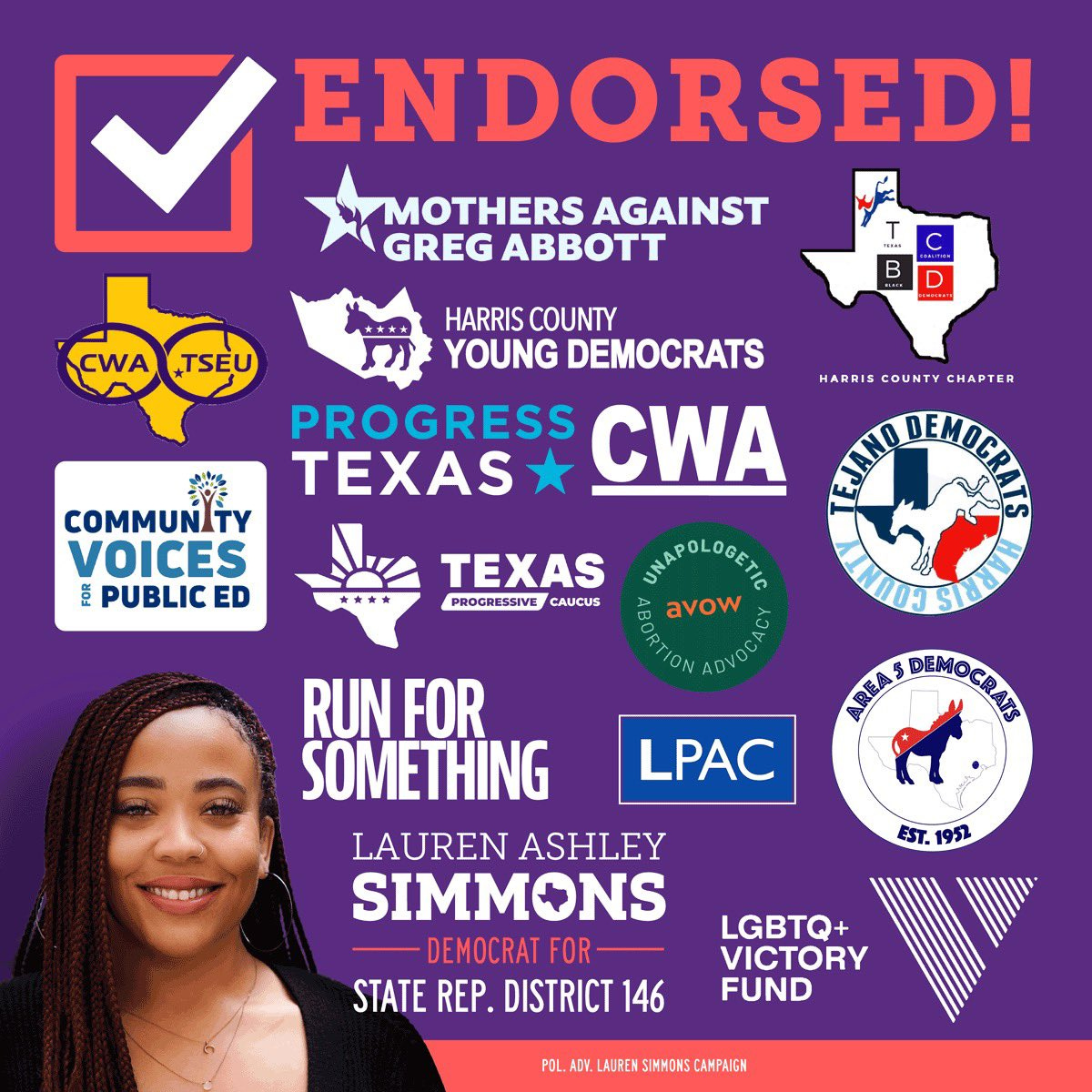 That’s why all of the Democratic endorsements, aside from my own, have been pouring into Lauren Simmons’ campaign.
