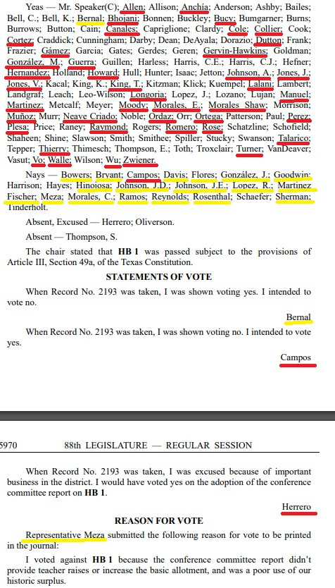 Ultimately, 17 Democrats, including John Bryant and Trey Martinez-Fischer, voted against the budget. The rest of the Democrats voted in favor of it.