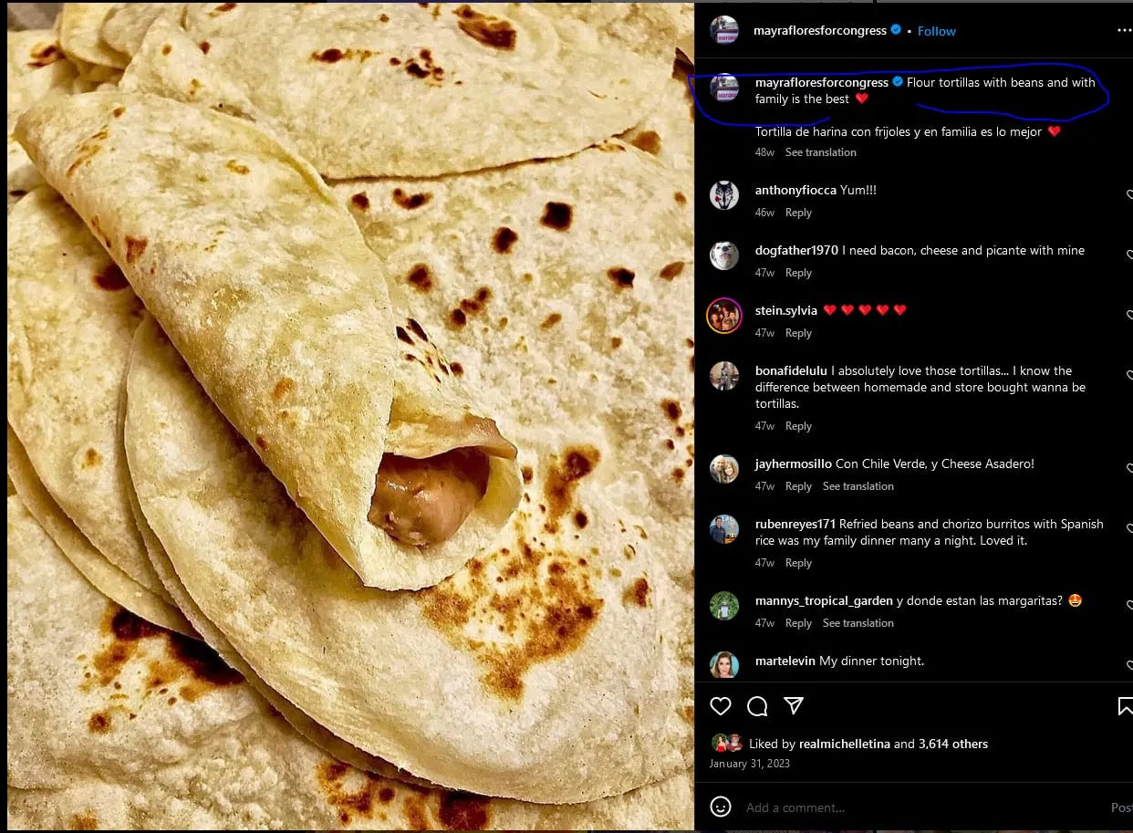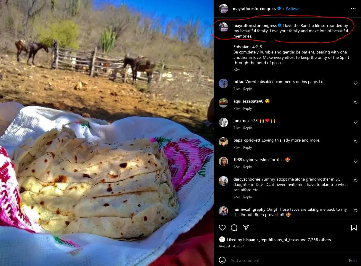 Another picture food picture Mayra Flores posted from her “family’s ranch” in 2022: