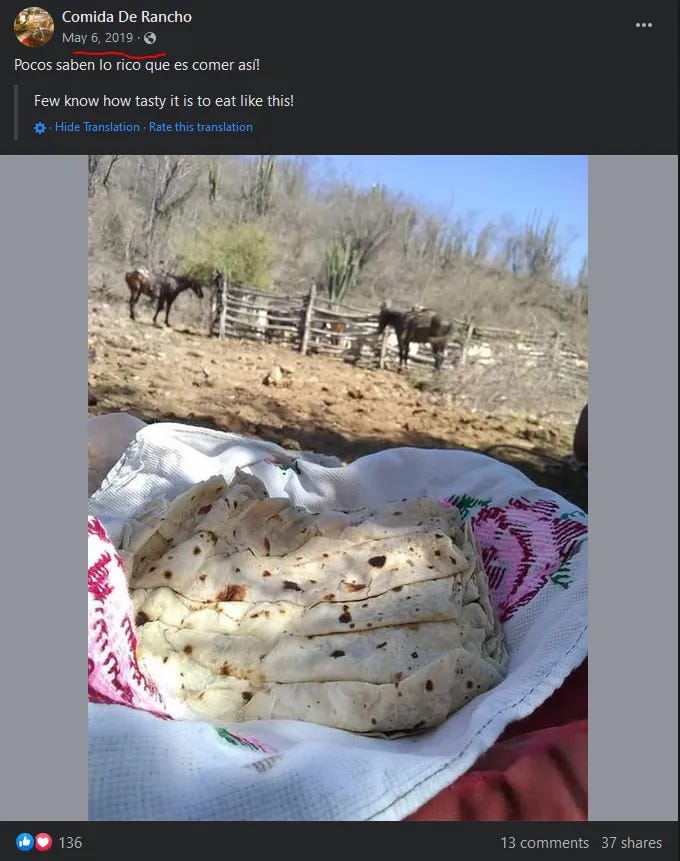 The picture was also stolen from a Facebook page in 2019 called Comida De Rancho.