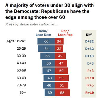 I’m 40+ish, so before you jump to “not all old people,” most people over the age of 50 vote Republican.
