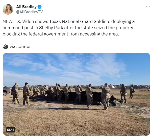 Around that same time, Ali Bradley from News Nation posted a video of the Texas National Guard Soldiers deploying a command post in Shelby Park.