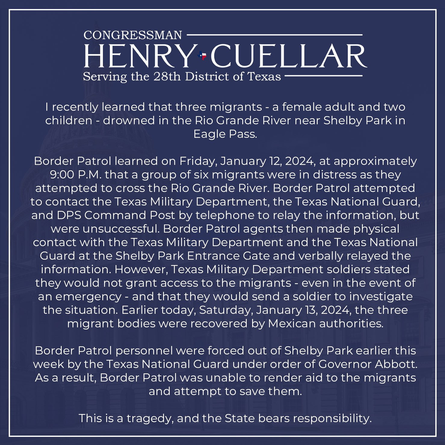 As reported by Texas Public Radio (TPR) today, “Three migrants drowned in the Rio Grande after Texas blocked Border Patrol from rescue.” The victims of this drowning were a woman and two children. TPR confirmed that “agents prevented the US Border Patrol from deploying lifesaving efforts with Operation Lone Star.”