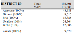 House District 80 is a border district and the same district where the Uvalde Massacre happened. The rumor is that borderland Hispanics have been leaning red in recent years. Whether that’s true or more Hispanic Democrats are staying home during elections remains to be seen. However, that’s certainly the narrative that Republicans have embraced.