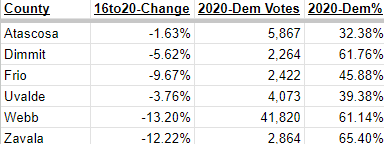 All these counties had voter turnouts of around 50% in 2020, which is low, even for Texas.