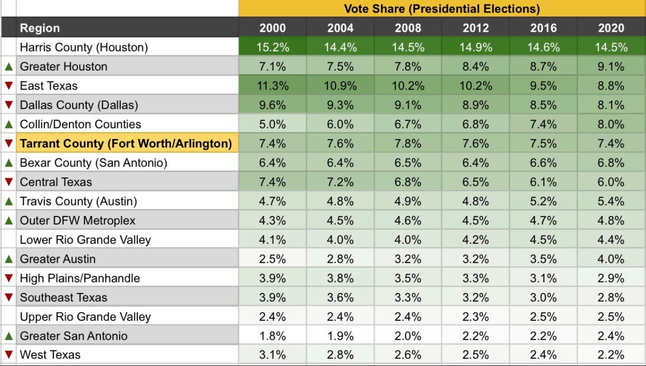 In 2020, Republicans only beat us in the statewide vote by 600,000 voters. The needle has moved left in every presidential election for over a decade. In the last election, we only came within 5 points of flipping the electoral college in Texas.