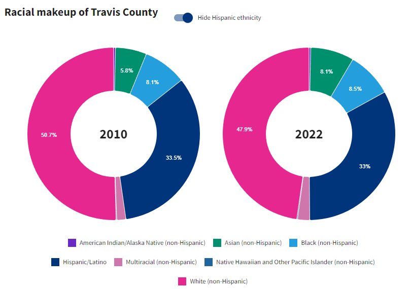 Like all other major urban counties in Texas, Travis is now a majority-minority county.