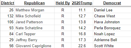 HD118 and HD37 will likely flip. These are districts that are otherwise blue and see Trump as unfavorable.