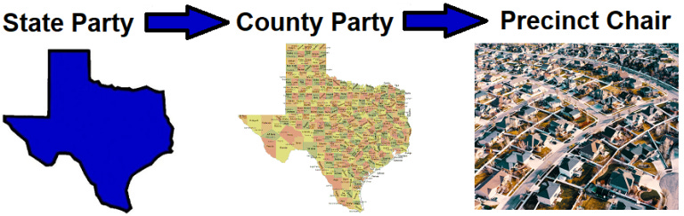 It's mostly non-existent. However, it should be the State Party connects with the County Parties, which connect with the Precinct Chairs, and there are a million tentacles in place to get messages out, get out the vote, or regularly engage with voters. While that's a simplistic description, it's not happening in Texas.