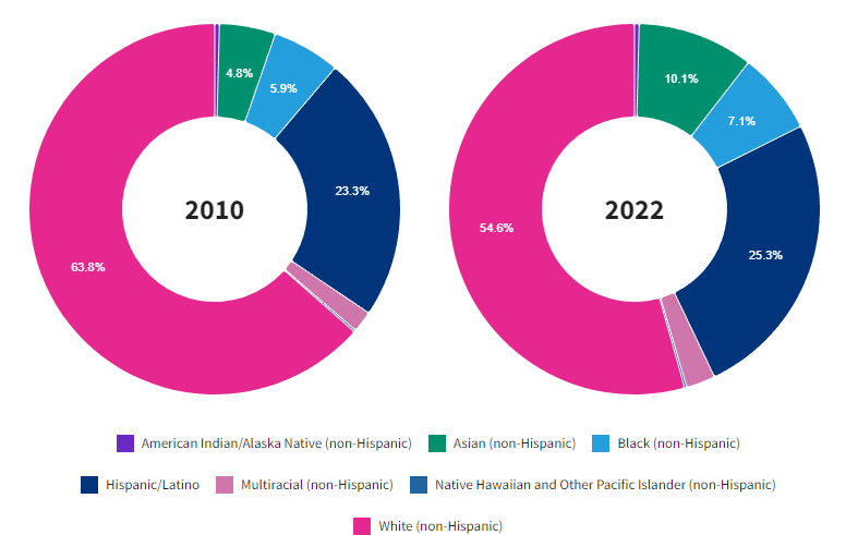 Williamson County’s most significant annual population increase was 4.7% between 2020 and 2021. Between 2010 and 2022, the county grew by an average of 3.9% annually. Like everywhere else in Texas, Williamson County’s Anglo population is shrinking, further favoring Democrats.