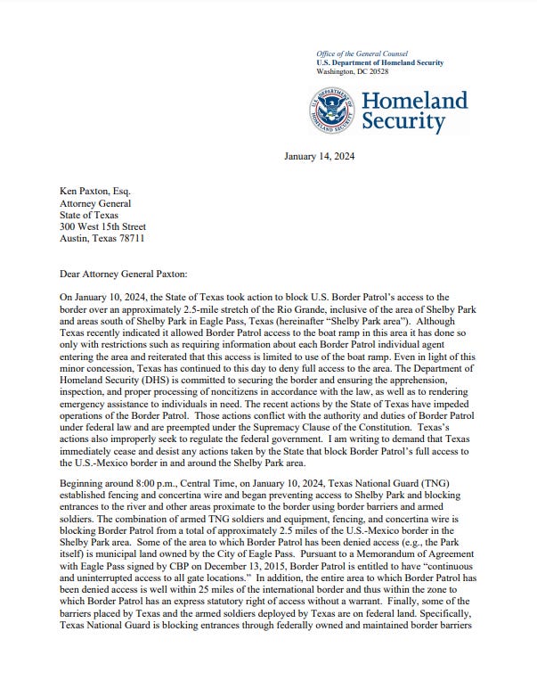 On Sunday, the Department of Homeland Security sent Ken Paxton and the State of Texas a cease-and-desist.