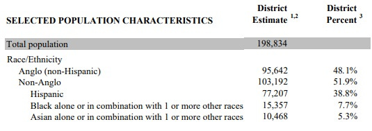 HD121 is a majority-minority district where the educational attainment and income are higher than in Texas as a whole.