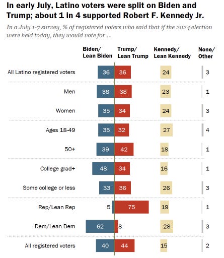 This should work in Swift’s favor since polling from earlier this year told us that college-educated Hispanic voters are most likely to vote Democrat.