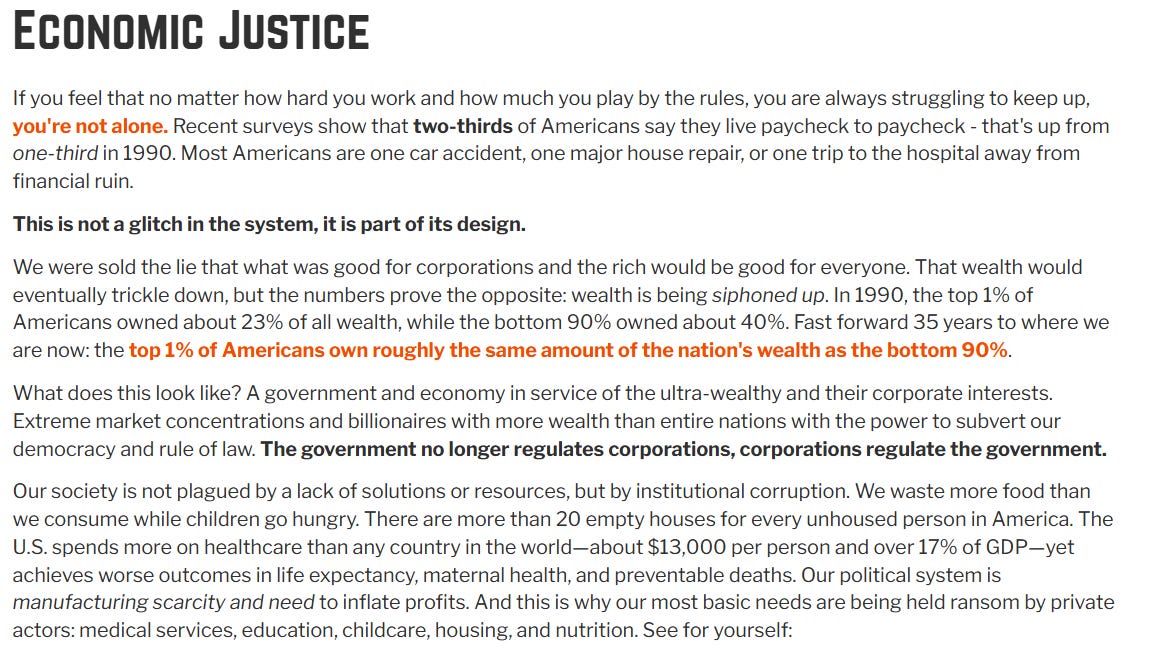 We also don’t have to pretend this is an open question anymore. Conservatism, as it’s been practiced in this country, has meant shifting risk downward, privatizing profit while working people absorb the cost. Deregulation, austerity, union-busting, and tax policy favoring the wealthy have produced exactly what we see now. Higher costs, weaker public institutions, precarious work, and a political culture that feeds on resentment rather than solutions. No version of that ideology builds a stable, multiracial working-class democracy, and it has no place inside a Democratic Party that claims to stand for dignity, security, and freedom.