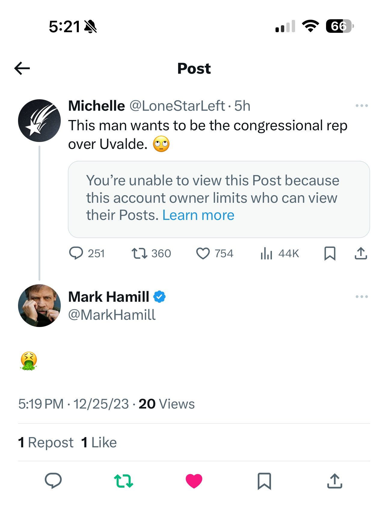 On a positive note, Luke Skywalker vomited in my Twitter mentions. On Christmas!