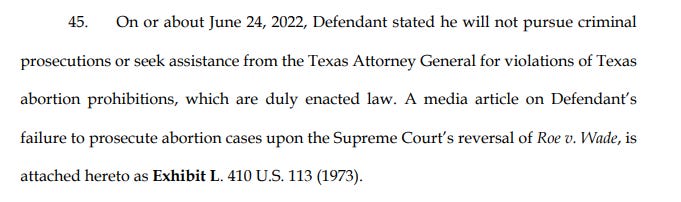 Among the complaints in the filing (which you can read here) include the number of cases Gonzalez’s office dismissed compared to the previous DA and his unwillingness to prosecute abortion cases or go after parents seeking gender-affirming care for minors.