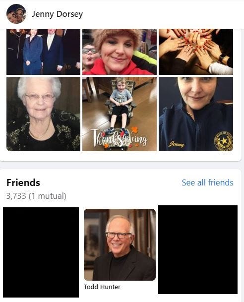 Jenny Dorsey also has ties on her publicly-facing Facebook with State Representative Todd Hunter and Nueces County Chair Barbie Baker.
