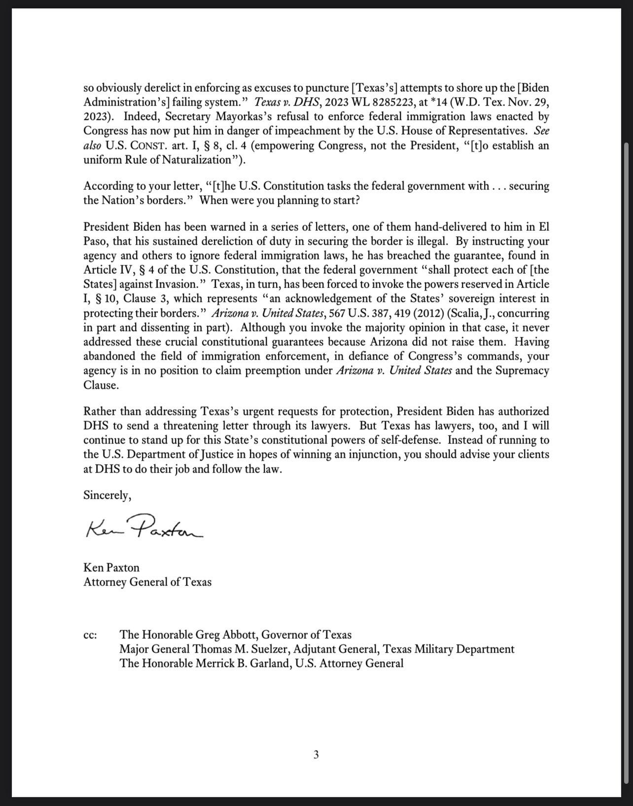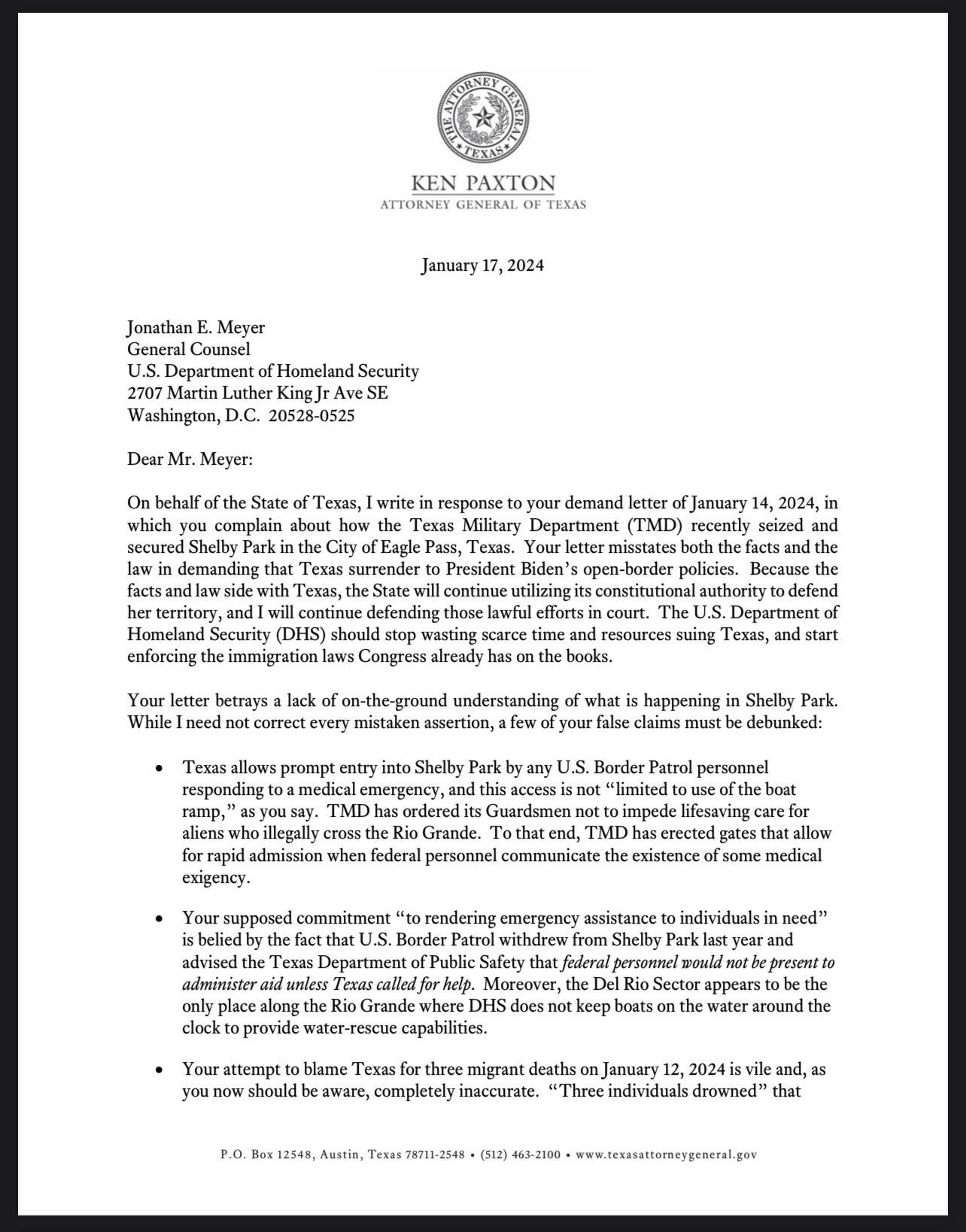 Last weekend, the Department of Homeland Security sent a cease-and-desist letter to the state of Texas regarding Republican’s latest border stunt. And Ken Paxton responded in true Ken Paxton fashion: