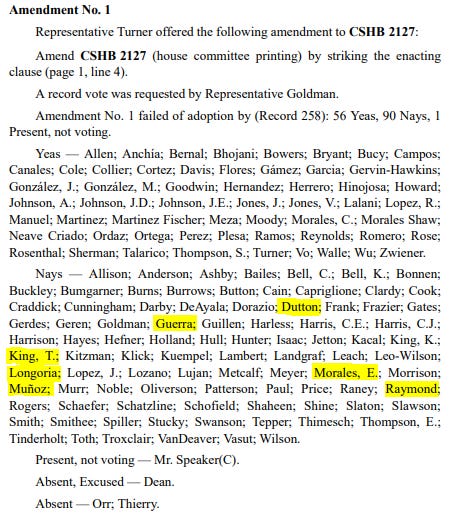 Democrats are SUPPOSED to stand for local control. Raymond represents District 42, based out of Lorado, and Longoria represents District 35, based out of Mission. They should both be censured by their local partied and primaried with progressives that won’t betray Democratic principles.