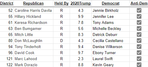 If we look at the seats within +10 Trump in 2020 and have a Democratic candidate of the Republicans who signed the Contract On Texas, we potentially have ten flippable seats.