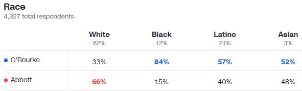 The majority of white people in Texas vote for Republicans.