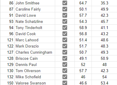 You probably notice that many districts’ Anglo/Non-Anglo breakdown is in the 40s and 50s. This is what Joan Huffman meant when she said she drew the maps “blind to race.”